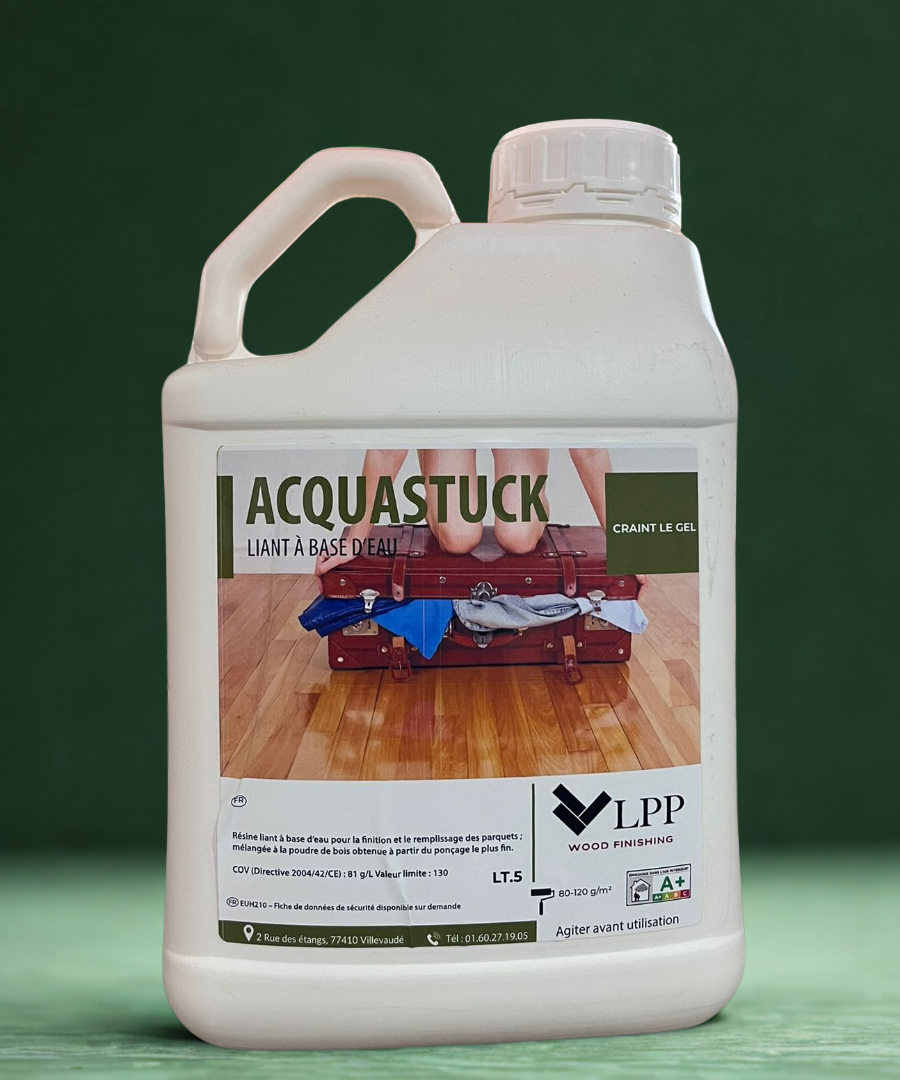 Résine écologique à base d’eau conçue pour la finition et le rebouchage des sols en bois.